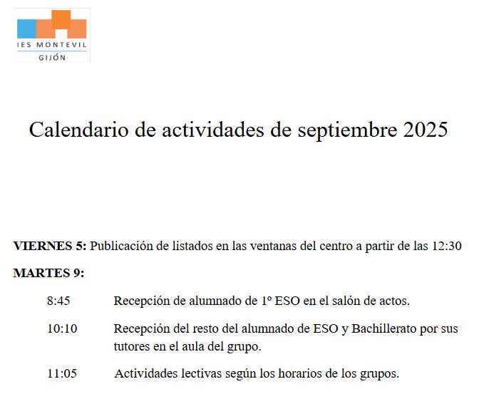 En esas listas figurará el grupo de cada alumno, el nombre de su tutor y su aula de referencia, a la que tienen que dirigirse el primer día de clase; es decir, el martes 9 de septiembre, según el calendario adjunto.